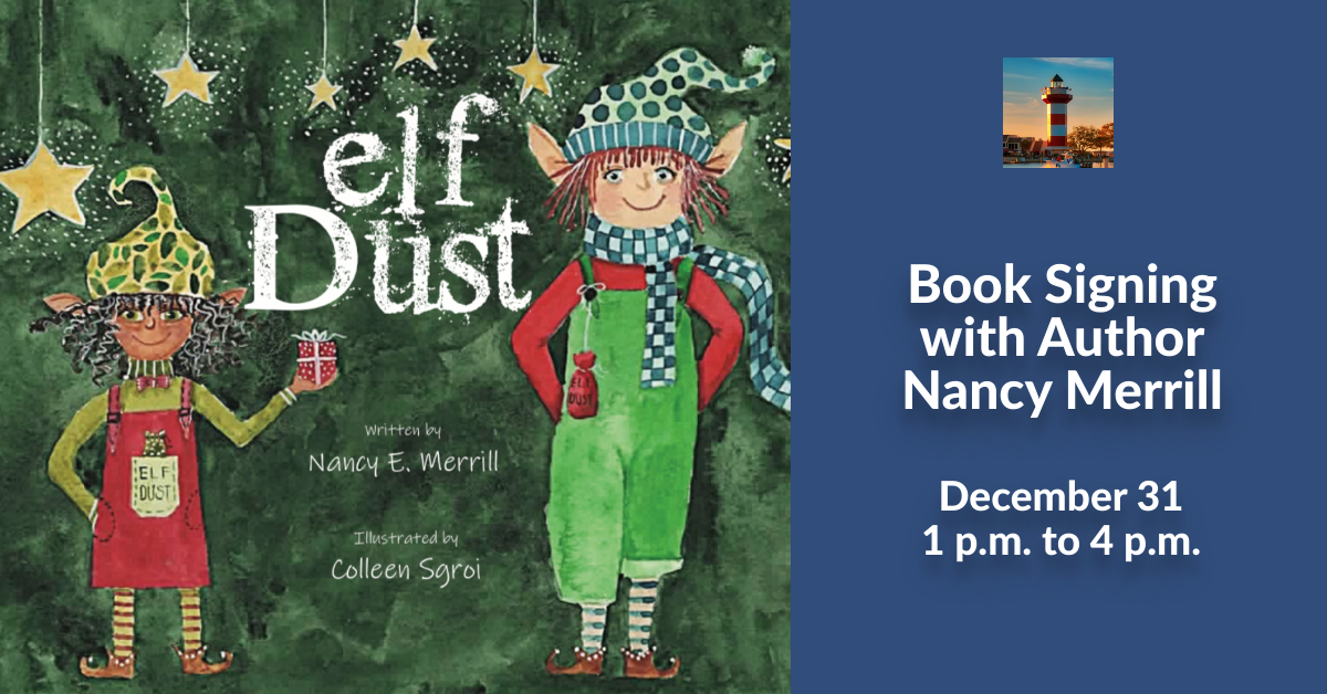 Join Nancy Merrill, local author of Elf Dust, for a special holiday book signing and family event at one of Hilton Head Island’s most beloved landmarks, the Harbour Town Lighthouse.