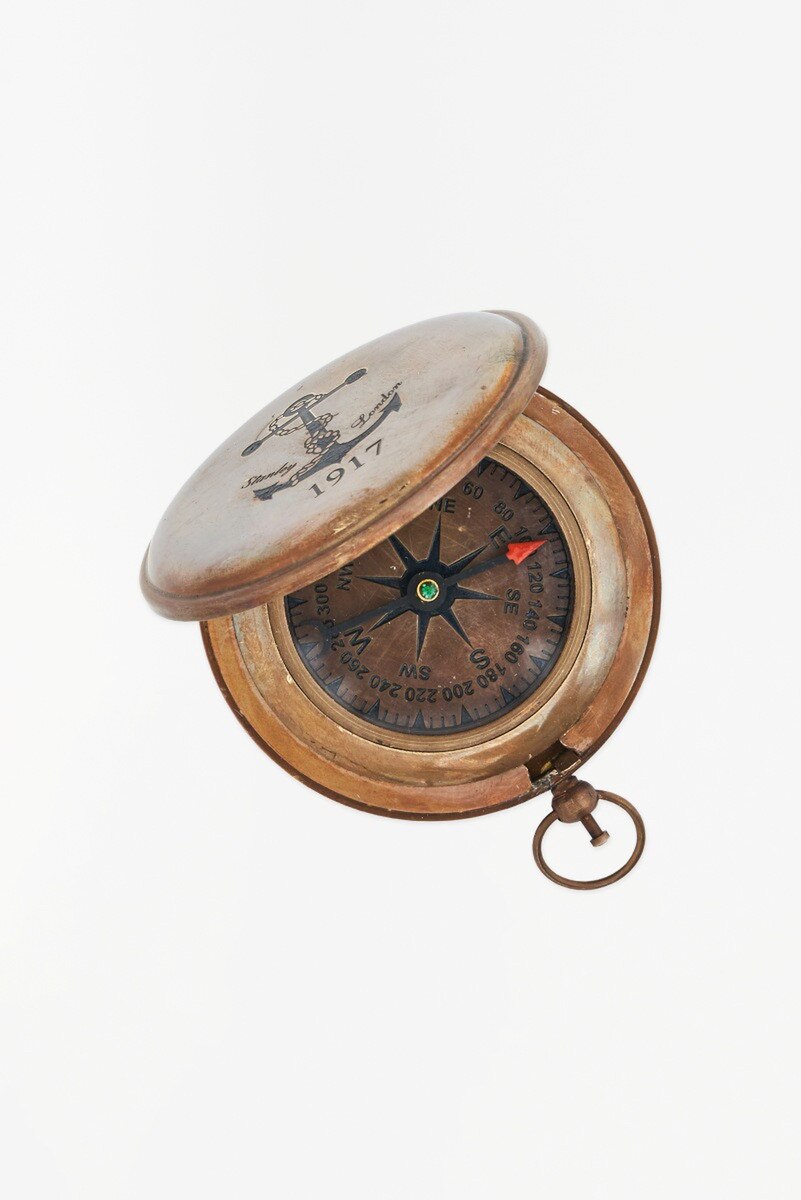 Batela 1917 Pocket Compass w/ Hinged Lid, Antiqued Brass, D: 3″
