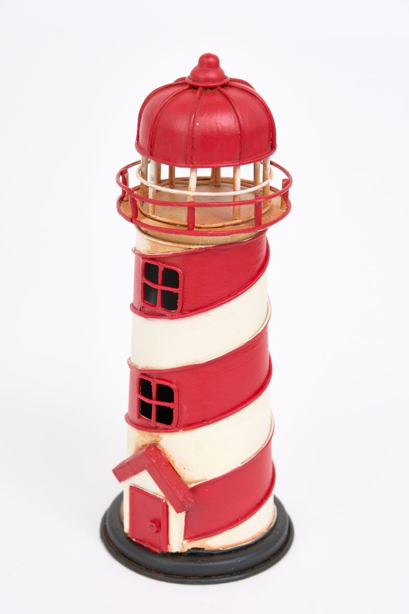 Batela Lighthouse, Metal, Cream & Red, D: 2.75″ – H: 6.7